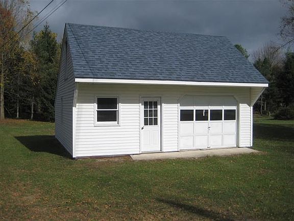 Efficient duplex ranch house on a large level lot with a fabulous carriage style detached garage. Lots of elbow room around this house. Right side has a brand new interior. Left side tenant has lived there for 33 years. Shared drilled well located on neighbor's property and there is an annual fee. Septic system is in front of the house.