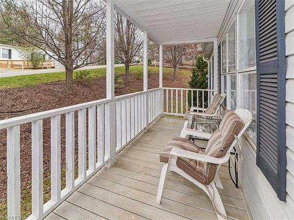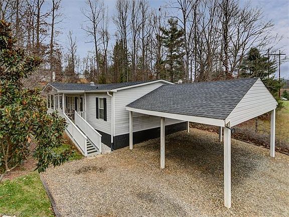 Nestled towards the end of the road in a well-maintained neighborhood. 4BR/2BA home has winter views & a private back yard with a cute fenced side yard perfect for your dog. The living room, dining room & kitchen provide a nice open layout. Kitchen has white cabinets & appliances & an island with seating for three. Laundry room, covered front porch, rear deck, 2-car carport & a shed. Minutes to downtown Weaverville & Asheville.