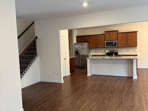 Large islandAbundant natural lightModern open-concept designStainless steel appliancesGranite countertopsLaminate flooring