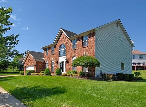 Stunning 1 1/2 Story located in Rockwood School District. Lovely 2 story entry foyer welcomes you to the awesome 2 story great room with massive windows and a built in media center. Hardwood flooring throughout most of main floor. The kitchen boasts a 3 yr old Sub Zero fridge with 2 drawer freezer, granite countertops, planning desk, all stainless appliances, breakfast room, glass back splash, large pantry.The mud room is off the kitchen and garage entrance. It is great for backpacks, coats and shoes. The laundry room has a huge amount of storage space for any extras you might have. Main floor master bedroom suite is off the great room. Luxury bath with separate shower, soaking tub and private water closet. There are three more bedrooms and 2 baths on the 2nd level. Jack and Jill bath between Bed 2 &3, bedroom 4 has it's own bath. Rooms are all generous size. The lower level is finished with plenty of room for variety of uses and full bath. Built in media area, play area office area.
