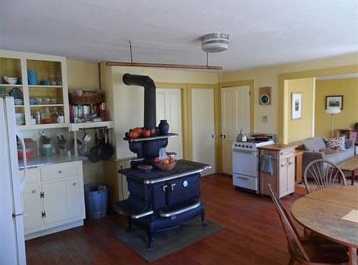 Sun-drenched antique Cape beautifully situated on 5+ gorgeous open acres bordered by old stone walls. First floor has a spacious kitchen with antique cook stove and enamel sink, a fabulous pantry with oodles of storage, charming living spaces with hardwood and wide board floors throughout, 2 bed rooms, and full bath. There is potential for a master suit, additional bed rooms, art studio, in the partially finished upstairs. Attached shed, marvelous P&B construction. Come see for yourself.
