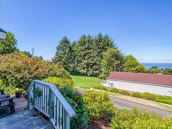 This spacious 3BR/2BA Palm Harbor home is situated on a corner lot in the Windsong subdivision of Yachats. Enjoy blue and white water ocean views from this well maintained home built in 2011. There's a large 24x27 two car garage, covered back patio off the primary bedroom, and a sunny side yard with a small green house, perfect for gardening. This great location is only a short distance to the beach, shops and restaurants!