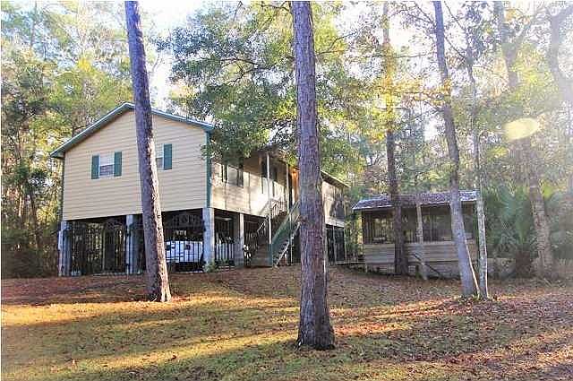 Come enjoy every nice feature of this 3 BR/1 BA home on a quiet street. This newly built home; with tile throughout is being sold fully furnished. Situated on one half acre ridge, home has never flooded! It has a screened back porch that spans the width of the house; overlooking the boat landing but isolated enough to offer privacy and seclusion. The under home concrete pad offers additional storage for boats, cars, and more; all of which can be secured behind the iron gates. Entertaining would be an ease with the oversized screened cook house, equipped with a grill, sink and table. Fencing yard would be easy to complete as posts are already in place. **17' aluminum g3 boat with 60hp Yamaha, lawn mower and gas powered golf cart may also convey.