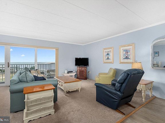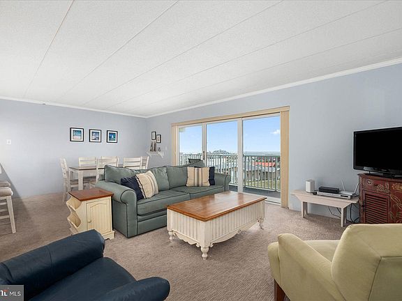 Come and see this fifth floor unit that has gorgeous views of Assateague Island, the Ocean City inlet and bay views. The views are spectacular, as seen in photos. There are water views in all common areas. Watching the boats coming and going in the inlet is a great way to spend leisure time on the large balcony off the combination living/dining room. Unit 505 is 1 of 5 units in the building with an open floor plan and includes more square footage. This unit has been well maintained, is freshly painted, has new carpet, a new kitchen counter top and has updated features in the bathrooms. The ceramic tiled shower is easy to access for the physically challenged. The plank laminate flooring in the foyer. kitchen and hallway provides durability for high traffic areas. The windows and sliding glass door were replaced in 2012. The condo association is responsible for the repair and/or replacement of the windows and the slider. They are all attractively dressed with custom Hunter Douglas treatments. This unit is close to the elevator and stairwell, if you prefer to walk up to the unit. The outdoor pool is lovely and provides bay views while you soak up the sunshine. The condo association has no assessments planned and has a strong reserve fund. The building is very well maintained with a newer roof, gutters, elevator interiors and outside maintenance features on the buildings. This unit has a dedicated parking space and shares an additional space with another owner. There is also street parking right next to the building that is non-metered. Located only 2 blocks from the boardwalk and access to the inlet parking lot where Sunfest , Springfest and other entertainment is provided! Don't wait any longer to enjoy your beach get-away! If you are interested in an investment property, this unit grossed $28,000 in rentals during the 2023 season. Buyers must honor rental contracts for the 2024 season.