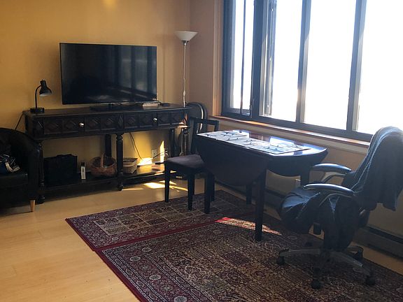 Furnished. Monthly rent includes all utilities (apart from internet), cable, free laundry on the same floor, free access to pool, gym, sauna, deck w/ barbecue equipment. No smoking, no pets.