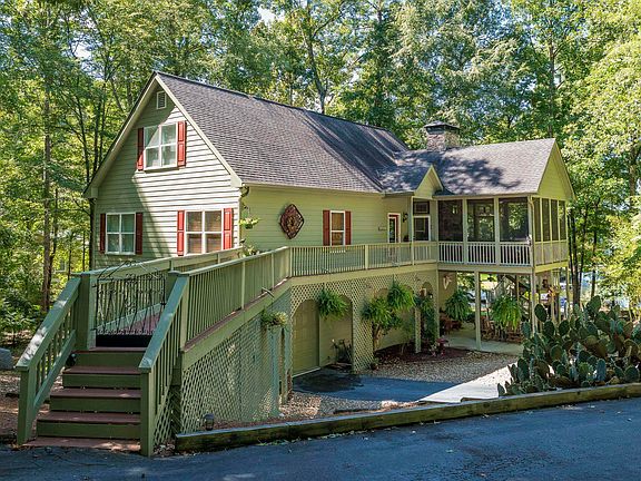 Beautiful, quiet cove located on the Richland side of Lake Oconee. "Serenity" The still waters of the lake reflect the beauty around it. You can feel the peacefulness of this cherished lake home by the warmth and caring the homeowner has put into their home away from home. This open floor plan includes 2 Beautiful Stone Fireplaces, hardwood floors, open kitchen with breakfast bar, dinning area, wrap around covered porch extending to large screened porch featuring second stacked stone fireplace. Master suite on second floor. Two over sized guest suites on main level. Daylight walk out basement with 10 foot ceiling's, has finished laundry room and full bath. Large living area with Serene lake views ready to be finished. 1 car garage located in basement with lots of storage space. Clear view of Reynolds Lake Club and just around the corner from the Ritz Carlton.