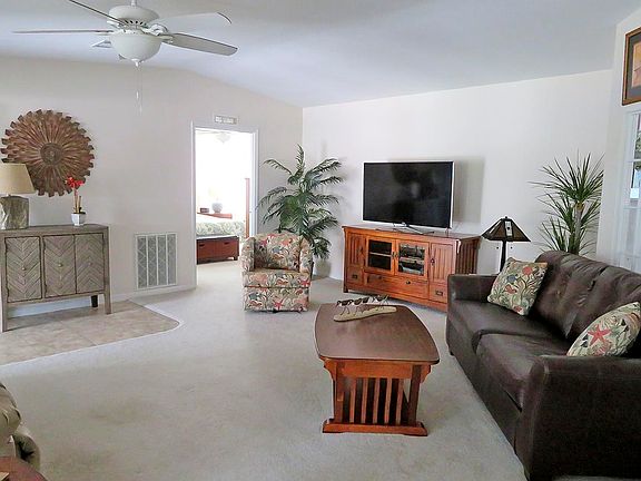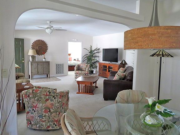 SALE PENDING. This lovely THREE bedroom TWO bath home is nicely FURNISHED. Clean kitchen. Walk-in closets in all three bedrooms. The front Florida Room is nicely finished with tile floor and slider windows. 2014 A/C, 2017 roof, oversized cart shed and well maintained mature landscaping. Make this a must-see when visiting Tanglewood.
