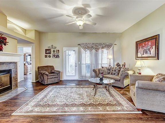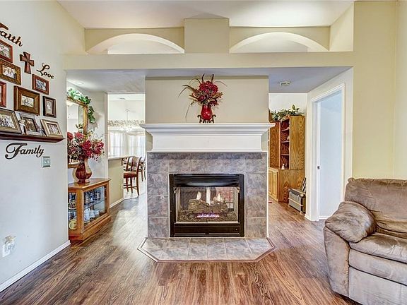PERFECT HOME & PERFECT NEIGHBORHOOD! Everything for your family! These homeowners have made some major improvements inside and out! They have added gorgeous granite counter tops in the kitchen and handsome wood-grained floors throughout! You'll also love how they have created beautiful outdoor living spaces, with both covered and uncovered patios in the back! Homes in this price range don't usually offer such amazing outdoor areas! Inside, the floor plan is bright and extremely open...great for entertaining! A double-faced gas fireplace offers another "wow factor" inside as it separates the living room from the family room. Enjoy both formal and casual dining areas! The private Master Suite is separated from other bedrooms. Master bath has double sinks, large garden tub, shower, and walk-in closet. In-ground storm shelter and a 3-car garage too! Don't forget the gated entry, neighborhood pool, clubhouse, stocked pond, and fabulous location!