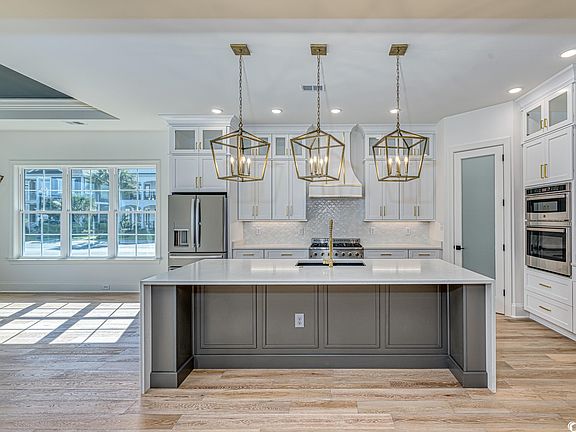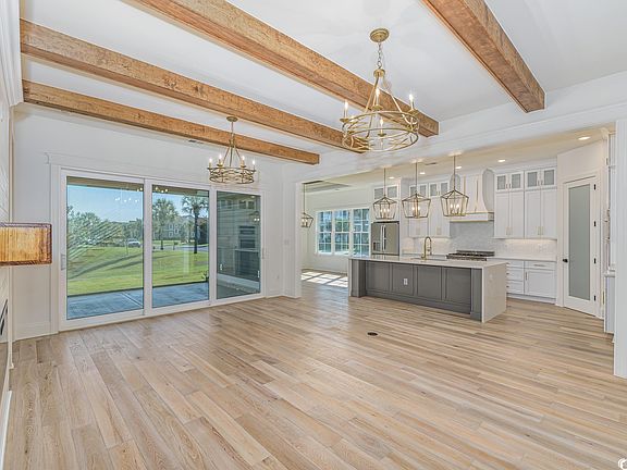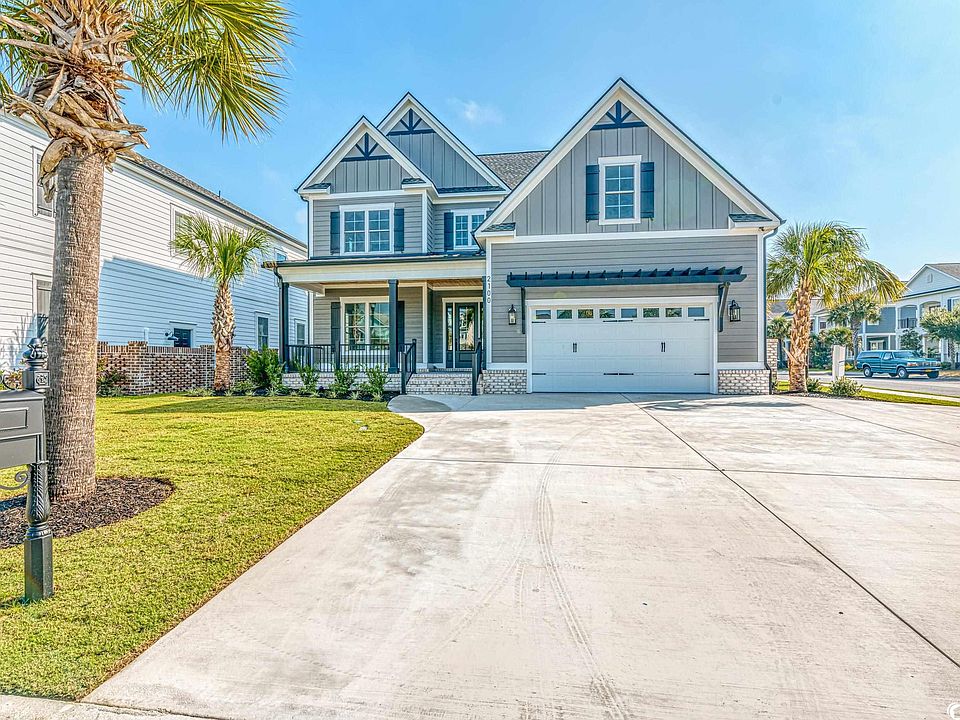 Welcome to your dream coastal oasis at 2100 Castille Drive in the coveted Waterway Palms Plantation community of Myrtle Beach, SC. This new construction 5-bedroom, 4-bathroom home sprawls over 3,817 heated square feet, and 4,777 total square feet, offering an extraordinary blend of space, luxury, and modern living. Step through the front door and marvel at the grandeur of the open floor plan. Rich hardwood floors flow seamlessly throughout, and shiplap accent walls add a touch of coastal elegance. The gourmet kitchen, adorned with striking quartz countertops and a convenient walk-in pantry, overlooks the living and dining room – all designed with captivating lake views in mind. Cozy up by the fireplace or unwind under the intricate beam ceilings, relishing the perfect blend of beauty and comfort. The expansive master bedroom is a sanctuary situated on the main floor, offering resplendent views of the tranquil lake. A second bedroom downstairs serves as an adaptable space – it can make a perfect home office or guest room, depending on your needs. Venture upstairs to discover three more generously-sized bedrooms and a flexible bonus room, ideal for a sixth bedroom, home gym, or media room. Step outside to the spacious screened porch, perfect for enjoying those warm, Southern evenings. An outdoor summer kitchen and patio create an idyllic setting for hosting BBQs and parties, all enhanced by lush tropical landscaping and a picturesque lake view. The home sits on a sizeable corner lot and features a circular driveway, providing ample parking space along with a two-car garage. Waterway Palms Plantation is more than a neighborhood; it's a lifestyle. Residents are spoilt with resort-like amenities, including a stunning clubhouse, a gym, and vibrant community events such as food trucks and outdoor movie nights. The community also boasts a sparkling swimming pool and lighted tennis courts, making relaxation and recreation a daily pleasure. The home is nestled within an award-winning school district and conveniently located near a range of goods and services. The white sands of Myrtle Beach and the Atlantic Ocean are just a short six-mile drive away. Additionally, a variety of entertainment venues and the international airport are within easy reach, ensuring convenience and connectivity. Don't miss out on the opportunity to experience the luxury coastal living you've always dreamed of at 2100 Castille Drive, Myrtle Beach, SC 29579. Your vacation lifestyle starts here.