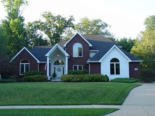 Listing agent: Gail Popp, Call 920-993-7223 for information. Stunning brick front former Parade home offers a sophisticated feeling, yet comfortable in design. Features include cherry stained woodwork, crown moldings, volume ceilings, charming kitchen-hearth room. Traditional spaces include a gracious two-story entrance foyer and great room and formal dining. Enjoy the spacious kitchen with abundant windows, large center island and gazebo style dining area overlooking the wooded, privately landscaped back yard, as well as an adjacent hearth room with center wall fireplace, guest powder room, and separate laundry room. Completing the first floor is the master suite with vaulted ceiling, generous size walk-in closet, private bath, whirlpool tub, separate shower and dual sinks. Upstairs find three bedrooms and full bath with dual sinks. The lower level is partially finished with game room and separate office/exercise room, plus traditional basement storage space. Additional features include a three car insulated garage, built-in speakers, a lushly landscaped, wooded private backyard with large deck and paver brick patio. This home offers quality and detail throughout!