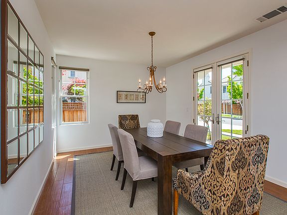 This Modern Spanish Colonial Revival in Bayport is situated on a corner lot w/ two yards, an open kitchen/family room, formal dining room & formal living room. There is a full bathroom on the main level, which allows the potential to convert the living room into a first-floor bedroom. The main level features tile flooring throughout, & the updated kitchen has granite countertops, a center island, & newer stainless steel appliances. Dual pane windows have Hunter Douglas shades & plantation shutters. A paved, fenced yard has a large lemon tree & espaliered apple tree, as well as two separate entertaining/relaxing areas. The second level features 4 bedrooms as well as an office/play space-could even be an additional family room. An upstairs balcony has partial SF skyline views. Walk/bike to Ruby Bridges Elementary School, parks & soccer fields & the SF Ferry on Main Street, Alameda Landing Shopping Center w/ Target & Safeway, Rock Wall Winery & downtown Webster Street!