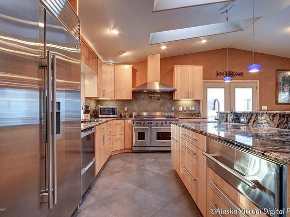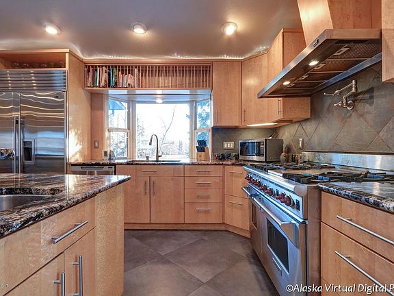 Stunning, West Anchorage custom hm. Start w/ the 'chef's' kitchen w/ dual gas range. Everything for the chef in the family. Custom flooring throughout. Two master BR suites w/ cedar lined closets. Absolutely unique bath design. Family room downstairs w/ what you need to entertain. Wrap around deck, High end heating system, & windows abound, to show off this beauty. It looks just like it sounds