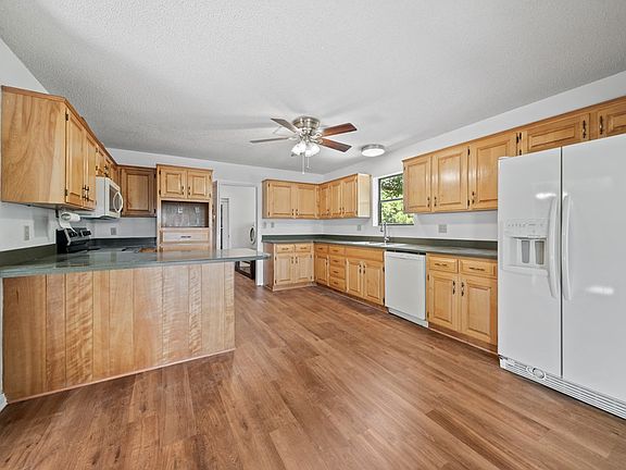 Beautiful 3-bed, 2-bath brick home on 2.6 acres just outside the city limits but still in town! Located in a highly sought-after area, this property features a brand new 5 ton HVAC with heat pump, laminate and tile floors throughout, a peaceful koi pond with flowing water, deck, 2 storage sheds, and tons of mature trees for privacy and shade. It also includes a water well and a separate entrance to a covered pull-thru RV parking pad with its own electric, water, and sewer hookups—perfect for guests, hobbies, or travel. A rare find offering space, charm, and convenience all in one!