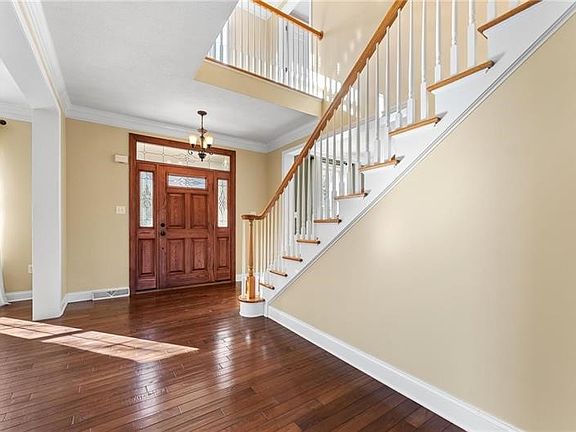 Welcome to this striking Georgian Colonial, a custom-built masterpiece offering elegance, comfort, and convenience. From the moment you step into the gracious entryway, you’re greeted by beau. hdwd flrs and refined crown molding throughout. Enjoy the spacious great rm with a dbl-sided gas fp, coffered ceiling, and expansive windows framing tranquil wooded views. Entertain effortlessly in the formal din rm with butler’s pantry, while the chef's kitchen, featuring st steel appliances, is ready for your culinary creations. The wide staircase leads to an impressive master suite with a tray ceiling, and a luxurious 15x07 walk-in closet with custom cabinetry. With 4 spacious bedrooms (and potential for a 5th) - a 1st-floor office adjacent to a full bath, the flexible floor plan is perfect for any lifestyle. And you’ll love the 3 car grg and abundant storage space. Located just minutes from I-79, shopping, dining, the airport, & Downtown Pgh, this move-in-ready gem is not to be missed!