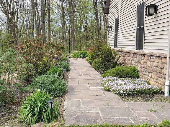 This custom-built home with over 3,700 Square Feet of living space sits on 2+ acres in Milford Township. This home is ready for you to move right into where you can enjoy the country life. The stone walkway leads to the front porch where you can sit and enjoy the view of the countryside. As you step inside the large foyer with tile floor opens up to the two-story family room with beamed ceiling, two story wall of windows that brings the outside in, floor to ceiling stone fireplace with wood stove insert to keep you warm on those cold winter nights. The eat in kitchen is open to the family room with custom cabinetry, tile floors, Corian counter tops and sink, dishwasher, microwave, gas cooking, pantry, and peninsula for seating. Sliding glass doors lead to the covered patio and Brazilian wood deck. The Formal dining room has hardwood floors. The master bedroom has sliding glass doors leading to the back patio overlooking the in-ground pool and large lot. Luxurious spa like master bath has large tiled walk in shower (4 X 6), separate Jacuzzi tub, and fireplace. Completing the first floor are two additional bedrooms nicely sized with neutral carpet and plenty of closet space, hall bath, powder room with vessel sink and stone backsplash that extends to the ceiling, and laundry room. The entire first level has radiant heat in the floors. The custom moldings and wainscoting add warmth and charm to the house. Upstairs there is a loft overlooking the family room and office that could easily be used as a fourth bedroom. Plenty of extra storage with large closets, unfinished walk in attic and basement. The finished basement has vinyl plank moisture barrier wood floors, wainscoting moldings, and is a full walk out with double set of atrium doors adding 1,000 Square Feet of living space. Two car side garages with electric openers. The covered concrete patio and wood deck are perfect for outdoor dining and barbecuing. Vacation in your own yard this summer beautiful heated pool with spa/hot tub and sliding board. Pool is completely fenced with stylish black metal fencing. The landscaping and especially the hardscaping are amazing. Home offers three types of heating source, forced air heat pump, 10 zone radiant heating system, and wood insert in the family room fireplace. Custom pre-cast superior basement wall system. Located close to major highways, Rt. 309, 78, 378, and Pennsylvania Turnpike. Quakertown Area School District. This is truly a custom home. Make your appointment today!!