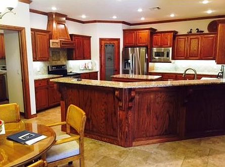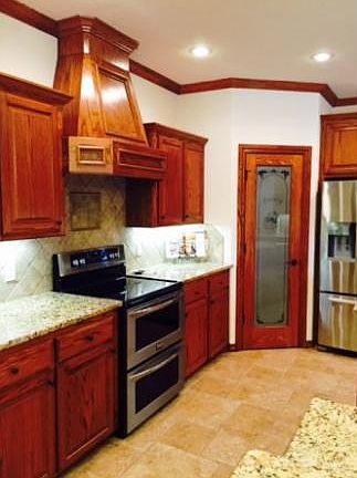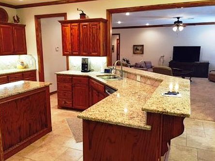 Oversized living, gas fireplace w/ picture frame molding surround, crown molding in main living areas. Lg kitchen w/ kitchen island & lg wrapping breakfast bar. Custom cabinets w/ pullout lower cabinet slides, walkin corner pantry, granite counters, stainless appliances. MIL bed floor plan, w/ lg master bed, huge master closest/saferoom. Master bath has lg tiled walkin shower & double vanity. Lg utility w/ lots of storage.Oversized wood fenced bk yard w/ Lg covered patio area.