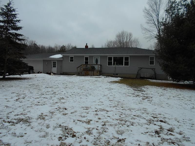 Cozy 3 bedroom 1 bath ranch on 3.06 acres in Caro country. This home features 1 1/2 car attached garage, replaced roof, vinyl siding, furnace and windows in 2011. Full semi-finished basement with a TV area and also another room for office space. The basement studs are insulated and ready for drywall. Plenty of room for storage too. Easy to heat, updated wiring, Kitchen is 9x12, LR 11.9x16, DR 10x15, bed 12x13, 12x10, 10.4x12.6, office space 13.6x11.6 Includes a 30x40 pole barn with cement floor and electricity. The basement is already plumbed for a toilet and a sink for a 2nd bathroom. Woods on both sides of this property and a great location. The wood stove in the pole barn does not stay with the sale, and the Hoist is negotiable