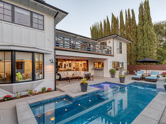 This state of the art home was completely remodeled, effectively rebuilt and nearly doubled in size in 2019 with quality construction and high end finishes throughout. No detail was overlooked. The remodel and addition was done by the current owners for their family. This is the ultimate entertainer's property with the heart of the home being a massive great room with a fantastic open kitchen and a dramatic wall of glass that completely opens to the outside patio spaces and pool. High-end finishes and designer touches are found throughout the home. The open kitchen is centered on a large island and Viking stove with a wood planked hood. Stainless steel Sub Zero refrigerator and freezer and beautiful nickel faucets plus custom cabinetry with open decorative shelving speak to the high level of design. There is a large walk in pantry plus a bar with 350 bottle glass encased wine racks. The large attached great room has a fireplace, built in bookshelves and decorative wood beams adding texture and drama. Through a sliding barn door there are two first level bedrooms both with their own baths as well as a very large laundry room. A formal dining room and formal living room complete the expansive first level. Upstairs the primary bedroom is light and spacious with french doors leading out to a deck overlooking the yard. The main bathroom features an enameled cast iron tub, a large double vanity with farmhouse sinks and designer tiles and appointments. A second bedroom upstairs also enjoys access to the sun deck and has its own three quarter bath featuring a sliding mirror that reveals a window. The real star of the home is the indoor/outdoor living. The sliding glass wall in the great room virtually disappears blurring the lines between the inside and the adjacent covered patio and entertaining area. The beautiful pool is flanked by multiple seating and dining areas, a built-in BBQ and a fire pit. Off of the garage there is a fully permitted ADU with a bedroom, kitchenette and a three quarter bathroom. The ADU has its own separate address and no expense was spared to make it as charming as the main house. This property is a rare offering in one of the most beautiful areas of Altadena. Solar system owned.
