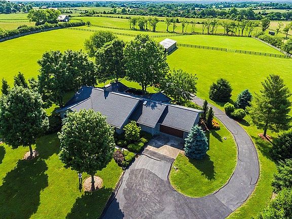 A chance to own a beautiful Ky. fieldstone ranch home and barn set on 10 scenic acres with panoramic views. This wonderful location affords privacy for those who savor the slower pace only 10 minutes from Lexington. A top to bottom rebuild with great craftsmanship and material upgrades make it a hard to replicate property. The rolling acres which are all usable offer many possibilities from horses to agricultural and the chance to own a piece of the dwindling land supply in Fayette County. The house with its open floor plan provides generous rooms and a 32X60 barn has 7 stalls. A separate lower level apartment could be rented as it has its own entrance. Whole house standby generator.