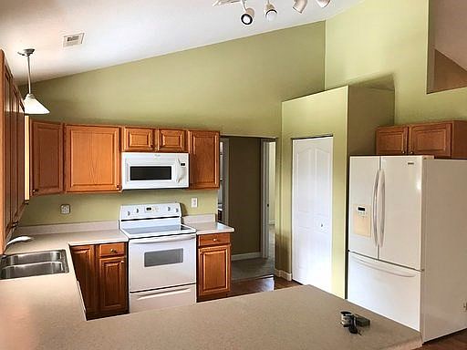 Fantastic Location! Close to I-85/Hwy 26. Nice eat-in kitchen w/all appliances remaining. Lg laundry room w/ceramic tile, family room features FP/gas logs & vaulted ceiling. MBR features trey ceiling w/jet tub & separate shower. Beautifully landscaped corner lot. Lg covered patio w/deck extension. Genlite generator, attached two car garage, fenced back yard , large barn/workshop and smaller storage building.