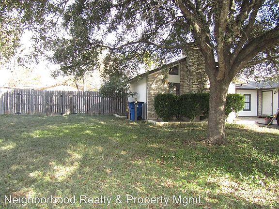Rare investment opportunity Both sides have current leases. *Attached photos are side B before current tenant~Converted garage can be used as 4th bedroom or additional family room~Master bedroom has a walk-in closet and direct access to the backyard patio. Washer and Dryer connections are off the converted fourth bedroom that also has access to the backyard and patio~Each unit has a fenced private backyard. Easy access to I-35 and Mopac