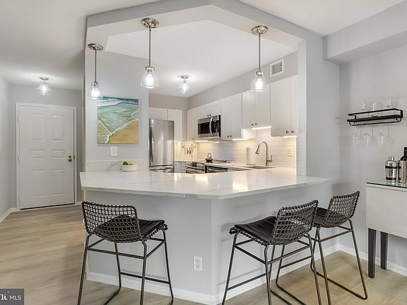 Not only is this 2 Br/1.5 Ba 910 sq. ft. condo remodeled end-to-end but it also offers the largest main level patio in all of The Astoria. You won’t believe the privacy and space in the fully fenced patio on the quiet side of the building, perfect for gardening and entertaining. The cherry on top is a gourmet kitchen installed just over a year ago, with new white cabinetry, quartz counters w/a large pull-up bar and high-end stainless-steel appliances. The primary suite includes two large closets w/new doors and a fully remodeled luxurious en-suite spa-like bathroom. Walk-in pebble floored shower w/bench, large quartz-topped vanity w/ample drawers for storage. New luxury vinyl plank flooring throughout lends to the airy feel of the home. Brand new large capacity stackable washer + dryer (LG). The Astoria is rich with amenities, including a fitness center, outdoor pool, tennis courts, grilling area, party room, 24/7 concierge, garage parking + on-site management. The condo fee includes trash, water, and sewer. Walk just half a mile to the Courthouse metro or hop on direct bus to DC right in front of the building. Blocks to popular restaurants + bars. Easy commute to DC, National Landing and The Pentagon. The unit has one reserved parking space and a private storage space. Live in a condo that feels like a true home!