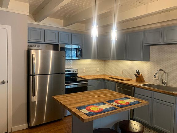 2 bed and 1 bath Silverthorne/Wildernest Condo available June 1, 2025 for a 1 year lease. Fully Furnished, fully stocked kitchen and linens provided. Access to clubhouse with hot tubs, pool, workout room, etc. Kitchen and the entire exterior of the building were recently updated. Easy access to all of Summit County and nearby resorts. Furnished balcony has great view of Red Peak. National Forest access directly across the street with many trails that are great in summer and winter. $2875 covers all costs including internet and all utilities. HOA does not allow pets
