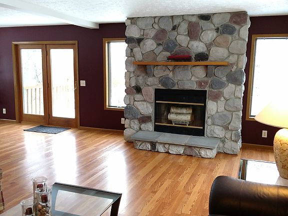*Lake and House on 5 acres* Now available 2090 Maes Rd. West Branch, Located at former Apple Valley Golf Course. Priced at $173,900. This country setting home sits at the end of a paved county road just 3 miles from downtown West Branch. The spacious 3,320 sq. ft., 4 bedroom, 3 full bath Cape Cod home is located on 5 rolling and wooded acres and owns a considerable portion of Crapo Lake. A beautiful stone fireplace anchors the large living room and is open to dining room and back deck. You'll love the kitchen with its matched set of stainless appliances and beautiful slate back splash. With pantry, lots of counter space and eat at peninsula, it will surely be a gathering place. The remaining main floor has Master Bedroom with full bath and walk in closet, Bedroom 2, Main Bathroom and Laundry. Upstairs finds 2 extra large bedrooms with great views and walk in closets. A full bathroom accompanies the upstairs bedrooms. Down the stairs, a walk out basement. On the right is a large tiled room. Perfect for office or kids play room. To the left a wood burning stove, flanked with stone. Tile planking leads you to the beautiful louvered sliding glass door and concrete patio. An abundance of carpeted floor finishes the spacious area. The basement will definitely be a family fun spot. With new roof spring 2017, Anderson Windows, fiberglass entry door, fresh paint and carpet, home is move in ready. Enjoy the private lake with its fishing and waterfowl. Wildlife abounds on the rolling hill sides that is Apple Valley Golf Course while rushing water creek fills the quiet evenings on the back porch