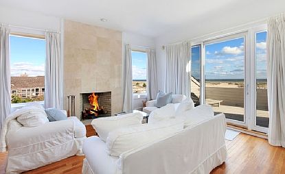 acres of pristine dunes. When you arrive you are greeted by the warm ocean breeze and an inviting stone path leading up to the home. Just outside the front door is a cozy seating area with unobstructed views of the bay, enjoy watching the boats or catch the sunset. Step inside to a large double-height foyer leading into the great room with a full wall of glass overlooking the dunes and the ocean. Also on the first floor you will find a guest wing with four en suite bedrooms, sun-filled dining room, chefs kitchen and atrium. Upstairs is a private master suite consisting of two fireplaces, three balconies, 360' degree views of the water, and an oceanfront siting room attached to two large master bathrooms complete with a private sauna. Enjoy the in-ground pool, hot tub and steps to the ocean beach on a private walkway. The house affords complete privacy and easy access to Southampton Village. Available for short term rental perids.