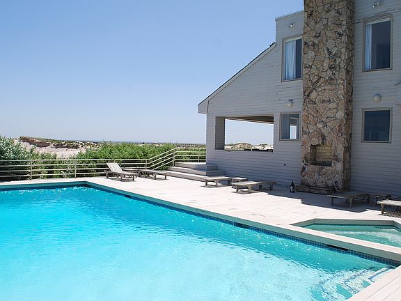 In-ground poolHot tubPristine dunesDouble-height foyerSun-filled dining roomCozy seating areaFull wall of glass
