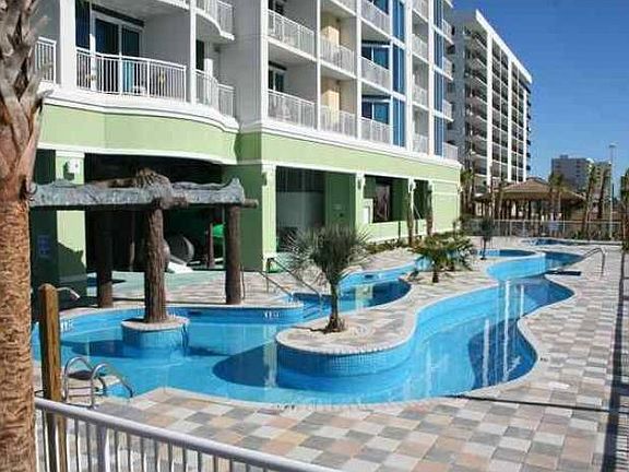 Come relax and enjoy this amazing resort with a super fun water park, lazy river, indoor and outdoor pool areas right in the heart of the Cherry Grove section of North Myrtle Beach. This unit overlooks the bright lights of North Myrtle Beach and Cherry Grove, while offering a full service resort at your disposal. Has decent rental income, comes fully furnished and has a 35/65 rental split, where the owner gets 65%, which is one of the best on the beach. This boulevard view unit is spacious and loaded with a great looking furniture package and feels almost brand new. It is only 3 years old and the building over looks the gorgeous Atlantic Ocean with plenty of beach to spread out. The unit has the upgraded furniture and fixture package which includes granite counters, rain head shower, jacuzzi tub, and tiled backsplash.