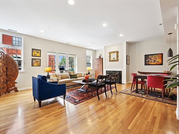 Originally built in 1882, Dickens Place is one of DePaul's most impressive & successful soft loft restorations. Redesigned for single level residential living in 1986 by architect Roy Kruse, this Victorian industrial complex offers a spacious townhome alternative. Enter the home through grand double doors to a marble foyer & wide floor plan that presents several living room, dining room and sitting area options. Natural light, 9.5 ft ceilings, large oversized windows & two Juliette balconies embellish the expansive element. A custom wet bar, wood burning fireplace and beautiful oak floors enhance the gracious living space. Chef's kitchen includes: custom cabinets, quartz counter tops, slate flooring, SS appliances, pantry & subway tile backsplash. Large primary ensuite features custom walk-in closet and quality updated baths. Unique to the building is the enclosed, interior courtyard garden and atrium designed for multi-use enjoyment including common grills. Additional common area features offer: fully equipped fitness room & sauna, elevator, guest parking, heated garage space #5 with locked bin, bike area + secure private storage cage. Close to shopping, restaurants, Metra and Armitage Brown/Purple line train stop. Pet friendly! Experience quiet & sophisticated living in the heart of Lincoln Park.
