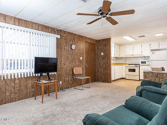 Quaint 1 bedroom 1 bathroom home located in the beautiful 55+ community of Casa Verde Estates. The community offers several amenities including a pool, spa, BBQ area and several activities. Home has new carpet in the living room and bedroom, fresh white painted cabinets, and an easy walk-in shower in the bathroom, Outside you have a large carport and covered porch to enjoy the Arizona winters.