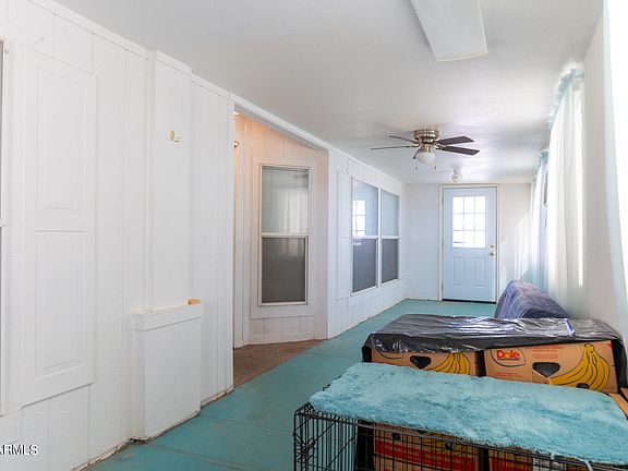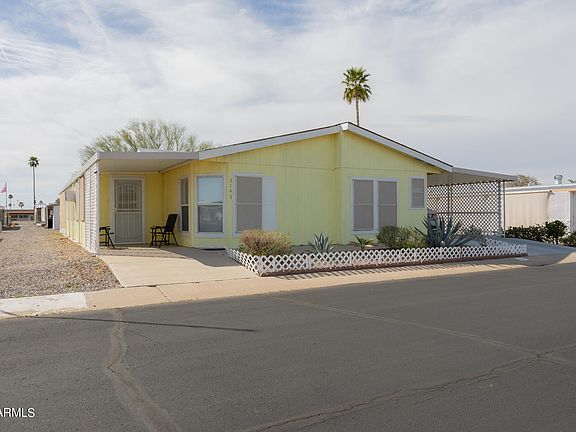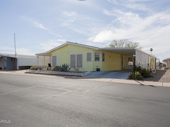 A great winter getaway or retirement home in Casa Verde Estates! This double wide home features 3 bedroom, 2 bath, a great room, formal dining, spacious eat-in kitchen with an island. Vaulted ceilings, laminated wood flooring, ceiling fans, and blinds throughout. A nice size den great for an office, and a huge enclosed Arizona room. 2 storage shed, one with a workbench. Home located in a 55+ community, near groceries, medical facilities, restaurants and shopping. Hurry and see this home before it's too late.