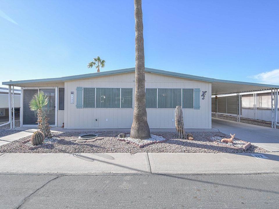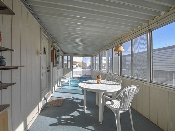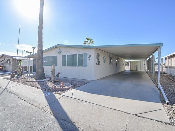 Check out this amazing home located in the 55+ park of Casa Verde Estates. This updated home has 2 bedroom, 2 bathroom with large living area, celling fans throughout the home and extra designer touches all around. Enjoy the Master bath with walk in shower and dual sinks plus extra linen closet. On top of a everything else you won't want to miss out on a full size enclosed Arizona room , 2 storage sheds with power, and a back yard sitting area with no obstructions for amazing views and sunsets. This home comes fully furnished and is just waiting on its new owner. Check out the virtual tour online and call today to make your in person showing now!