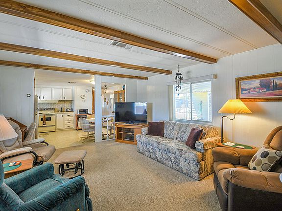 Charming and well maintained, this bright and open home features a split floor plan, new interior paint, a beautiful newly renovated master bath, a shed with work bench and comes fully furnished. Conveniently located across from the putting green, picnic area, laundry facility and clubhouse.