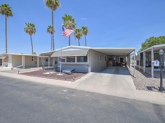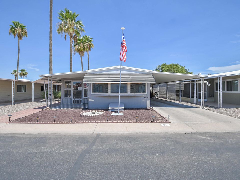 Look no further, your home is here! This partially furnished home features 2 bedrooms each with built in storage and an additional closet. The kitchen has been partially updated with gorgeous new paint and is open to the living room perfect for entertaining. There is also a screened in front porch and additional sheds out back along with an enclosed room off the back patio providing more space/storage. Even the guest bath features a spacious walk in shower. Retiring in Arizona never looked better. Schedule your showing and make this wonderful home yours!