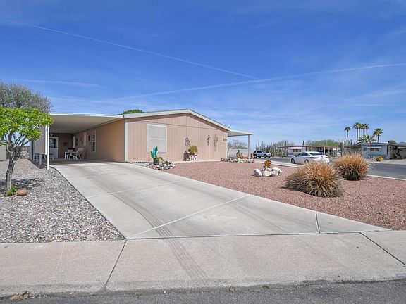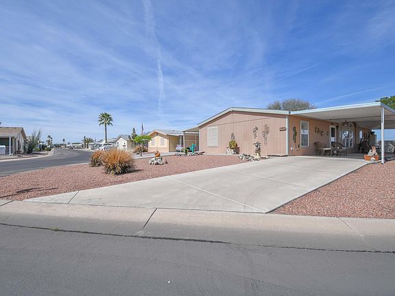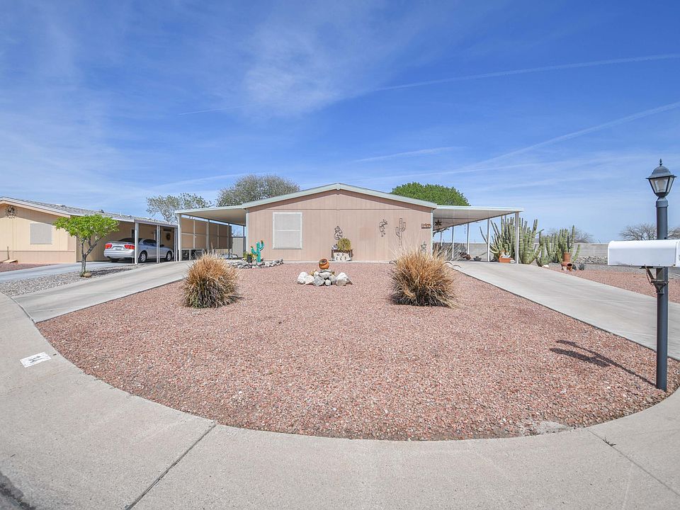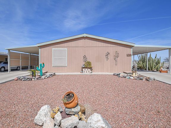 Stop looking! Your home in Beautiful Arizona is here! Located in a gated 55+ community, This home has the best OVERSIZED lot of the entire community. With mature desert landscape out front and unobstructed Mountain views from the front patio, How could you want more? This Beautifully maintained home features 3 bedrooms and 2 bathrooms and comes partially furnished. There are 2 storage sheds providing ample storage, A filtered water system, a large Master Suite, this home leaves little to be desired. Schedule your showing today!