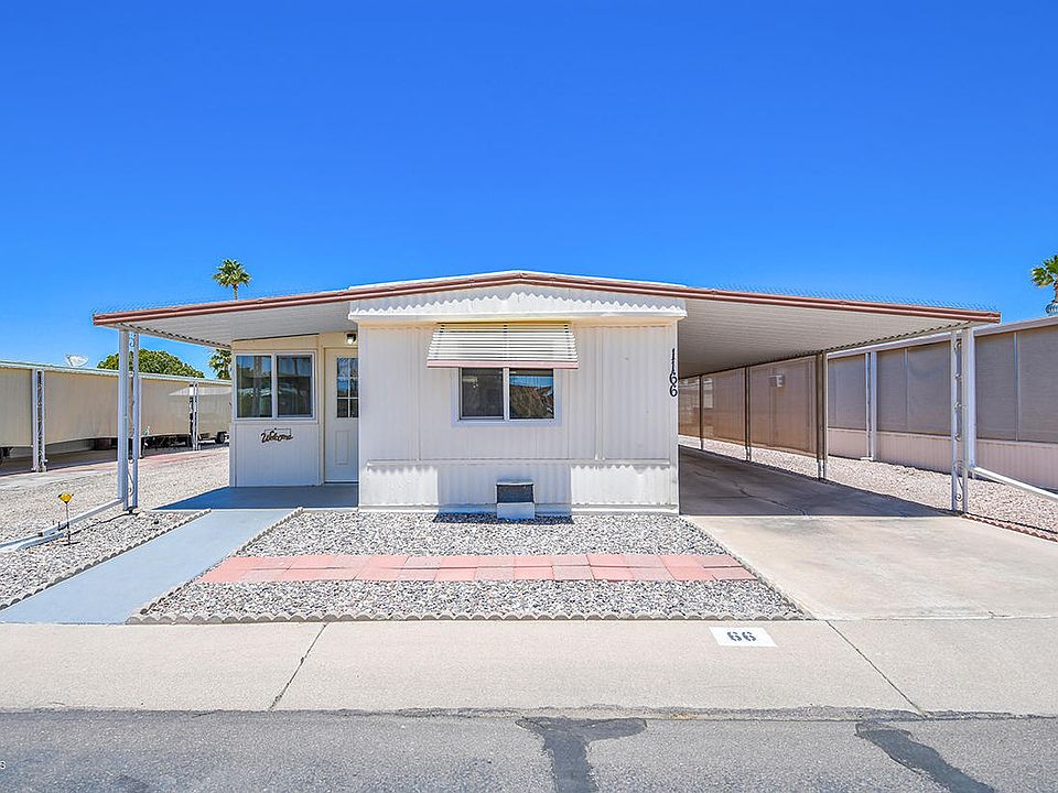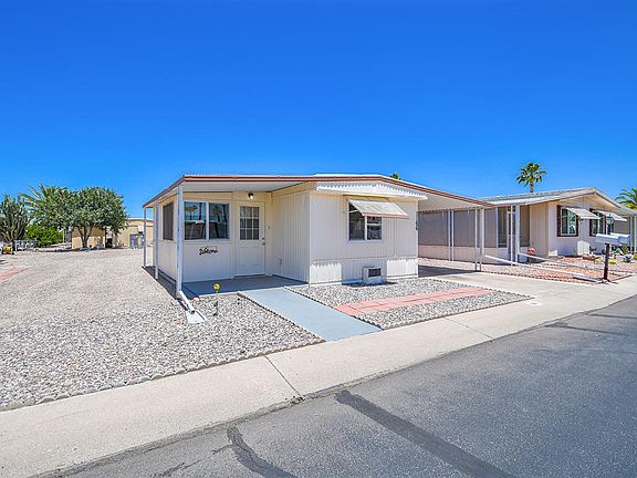 This charming one bedroom and 1 bathroom home features BEAUTIFUL laminate flooring, gas appliances and UPGRADED new windows!! You can't beat this value!! It also has a an Arizona room with a built on storage room and pantry!! Outside you will find ANOTHER storage shed!! Located in the wonderful community Casa Verde Estates this is a perfect place to enjoy retirement living!!