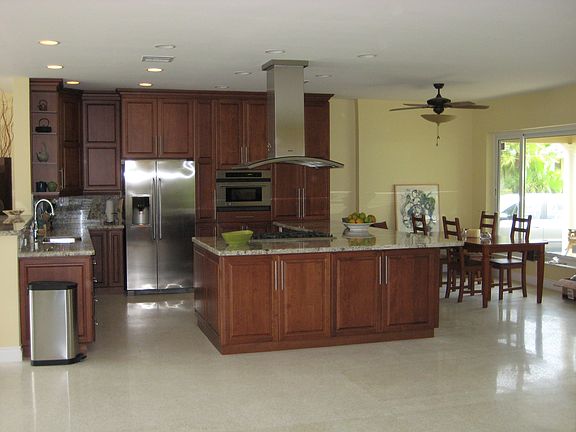 Rare find! 4 bed 3 bath 2 car garage, no closet in 4th bed. Picturesque culdesac point lot with 150 ft ocean access waterfront, 50 ft dock/deck and 16 ft paddleboard/kayak dock and room for a pool. Captivating open plan flows around luxurious custom kitchen with cherry wood cabinets, gas cooktop, stainless appliances and endless granite countertops. Stylish remodeled baths with TOTO fixtures. Elegant terrazzo floors, impact windows/doors, high-efficiency lights and HVAC (18 SEER). 2 fixed bridges.