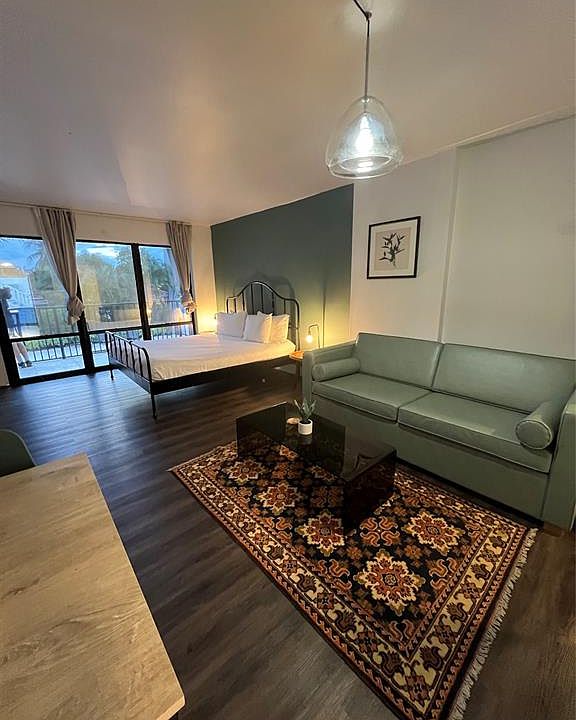 Beautifully updated and furnished annual studio unit available. Kitchen includes fridge/freezer, oven, microwave. Central a/c. Electric, wifi, water, sewer and trash included for $100 extra per month. 1 assigned parking space. Attractive convenient complex just west of A1A and beach. Relax by the tranquil pool area on the days you don't want to go to the beach. Free on site laundry. Pet permitted up-to 10 pounds with additional $25 per month (non aggressive breed). $25 application fee for credit/background reports. Price listed is Annual rate can be furnished or unfurnished. Short term, flexible lease terms available 1-12 months. Prices vary, call for rates and unit availability. Tenant responsible for transient tax if term is under 6 mths and one week. Pictures may vary per unit.