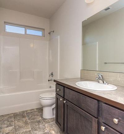 This newly built home features an open great room with vaulted ceilings. The kitchen has solid counters, stainless steel appliances with center island. The home is single level with 4 bedrooms and 2.5 baths, located at the end of a quiet street with a very private back yard and RV Parking. Master bedroom has 9 ft ceilings, master bathroom has double vanity, soaking tub and separate shower with a large walk in closet. Landscaped and fully fenced, just move in your furniture and your home is complete.