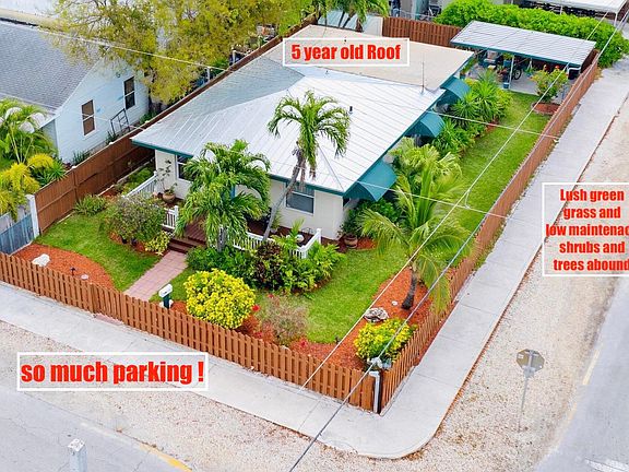 PRICE IMPROVEMENT on this lovely 3bed/2 bath Key West home!Gorgeous, lushly landscaped corner lot in Midtown. 1 mile to historic district. 1 mile to beaches. Spacious front, back and side lawns and a stained, wood fence surround this strong, concrete home. Room for a pool! Off-street parking is ideally located in the rear of the property with a carport and there's abundant street parking at front and side for your guests. The layout of this home is superb, with open, front to back living areas. A large living room with 3 oversized windows leads to a central kitchen with stainless steel appliances and then a dining room. All three bedrooms sit off the central hall on the right side of the home. A large common bath is shared by the two front bedrooms and the rear, spacious primary bedroom has en-suite full bathroom. Laundry room with new washer and dryer. Pantry/storage area is in the rear of the home with the back door opening onto a spacious back yard. Generous storage shed in the corner is an added bonus. One of the sweetest features of this fabulous home is its quintessential, 200 sf front porch. A welcoming feature for neighbors and friends, it offers outside living with abundant room for lounging and dining. Facing north-west, the sunset views from the porch are stunning! Imagine dining at twilight on a quiet evening gazing at a canvas of purples, oranges and pinks. This is what Key West is all about!A hip metal roof was completely replaced in 2019 to include all current code requirements, newer HVAC system and very reasonable insurances (see attachments).Midtown East has grown rapidly in popularity due to the quaintness of its neighborhoods, its large lots and its close proximity to EVERYTHING! 1 mile to the south side beaches, 1 mile to Old Town and a hop, skip and a jump to shopping and schools. This is your chance to get in on the always accelerating Key West housing market and into a great home!
