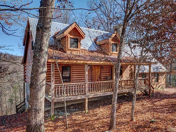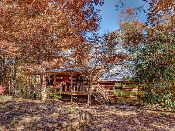 Huge price reduction, owners are ready to sell. Originally listed for $549,000. Prime location on Lake Glenville with huge value in this large lot. This home offers some lake views and amazing mountain views from the back porch. The home is a rustic 2 bed/bath log cabin with vaulted ceilings and stone fireplace on 5.9 acres with loads of potential and great privacy. Large two car garage. This property is directly across from the Lake Beach area/public boat ramp and yet only ten minutes from town. The famous water release also takes place on High Falls Trail which is located within walking distance. A must see to fully appreciate all that this opportunity has to offer.