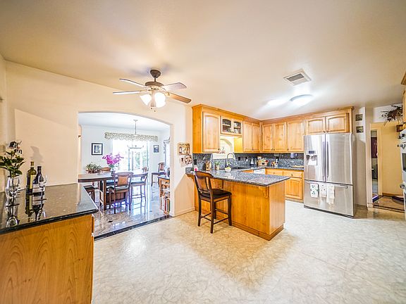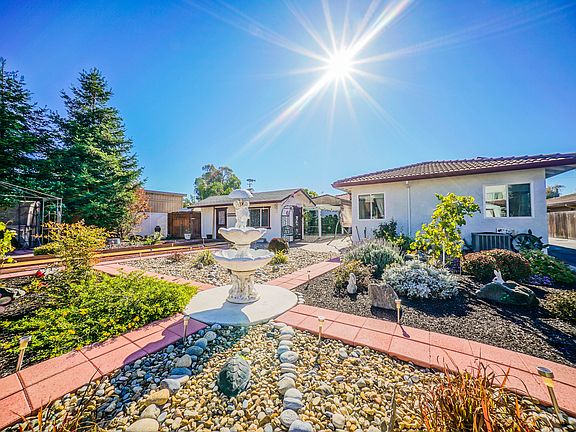 This immaculate custom built single story home has every amenity one could desire, from the beautiful kitchen to the vast half acre lot! The welcoming front porch with a custom iron gate is only the beginning. Upon entering this beautiful home you are greeted by the formal living and dining room with stunning solid granite flooring! The dining room features custom cabinetry and wine bar and leads to the back patio. The family room has beautiful engineered wood flooring, stone/granite wood burning fireplace for those chilly nights and crown moulding. This amazing home offers 4 bedrooms and 3.5 Baths. The gorgeous Master Bedroom is something to be seen with a large retreat featuring decorative double doors that lead to the back patio. The Master Bathroom offers solid marble throughout, sunken tub, stall shower with bench, dual vanities and plenty of space for your clothes in the walk in closet. There is even a bidet! The Jr. Master offers double closets, full bathroom that also includes a bidet and a changing/vanity area. Solid granite floors and custom matching backsplash are present in the 2 hall bathrooms. A chefs dream kitchen that boasts beautiful oak cabinets with custom handles, solid slab counter tops with a decorative custom designed mural and backsplash. High end appliances including Viking double ovens & Wolf 5 burner stove top. The breakfast bar, wet bar and a dry bar provides endless space for entertaining friends or family gatherings. Upgrades included throughout the home are canned/LED lighting, accent lighting, upgraded carpets and plenty of storage space. The back yard is an entertainers dream! Immense covered patio and private BBQ area to enjoy those summertime BBQ’s. Detached storage room and work-shop, ideal for a potential craft room, sewing room or studio. Enjoy parties or gatherings playing on your personal Bocce Ball court with copped granite inlay, relax in any one of the multiple patio areas all while appreciating the charming drought resistant landscaping. Huge extended paved driveway with a detached garage that includes 2 separate workbenches. Large covered RV parking with a 30 AMP electrical outlet! This home is nestled on a quiet, private lane providing country living atmosphere yet minutes from downtown, shopping centers, and multiple wineries including Wente, Concannon and Ruby Hill.