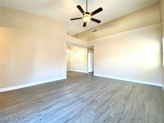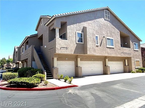 Located in Peccole Ranch, this second floor corner unit offers volume ceilings and has lots of natural light! Two tone paint, upgraded kitchen with stainless steel appliances. Laminate flooring throughout. Spacious primary suite with walk-in closet. Dual balconies. 1 car garage with storage shelves. All appliances are included!