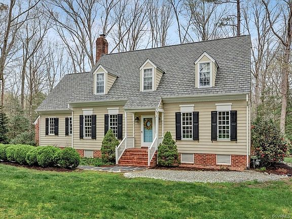 This lovingly and meticulously maintained Cape Cod home is situated on a .74 acre private cul-de-sac lot. A slate walkway, edged with matured boxwoods, leads to the covered front porch. A center hall entrance, with a true foyer, has chair and crown moulding. Formal dining and living rooms are both bright with natural light and large enough for family gatherings. The kitchen boasts white cabinetry, granite, island, newer SS appliances and a large eat in area with bay window. A cozy but spacious family room, offers a wood burning fireplace, wet bar and built-ins. There is an office/study being used as a first floor bedroom and a powder room. Second floor has a master suite with a walk -in closet and an updated bath with white vanity, marble counter and a ceramic tile shower. There are two additional bedrooms one of which is a teenagers suite. The suite has a walk-in closet and an attached extra bonus room/bedroom. Hardwood floors on the first and second floors, gas heat and central air. One car garage, large basement, great storage space, plenty of parking and a large rear patio perfect for entertaining. Short walk to lake, playground and picnic area!