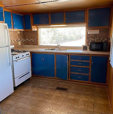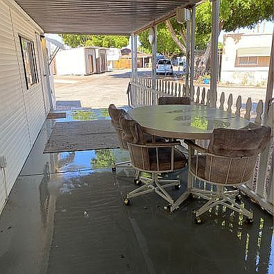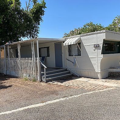 Senior home park 2 small pets allowed. must pass background check from park. Older home but very sturdy roof is treated with leakproof stucco. newer ac and electric water boiler, propane stove. Water trash included in space rent $385.00
