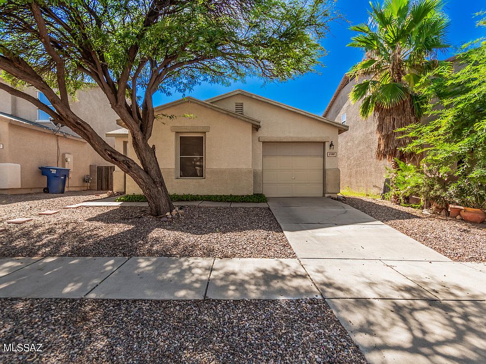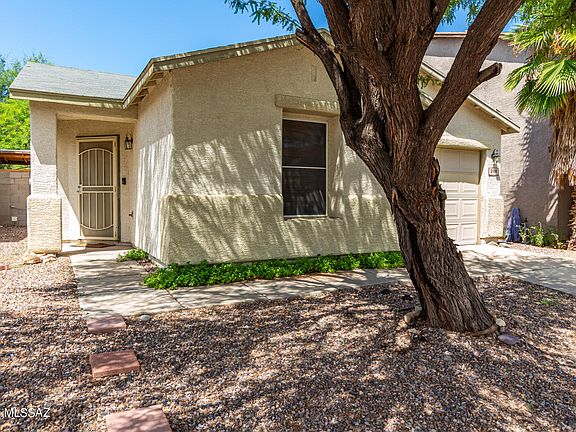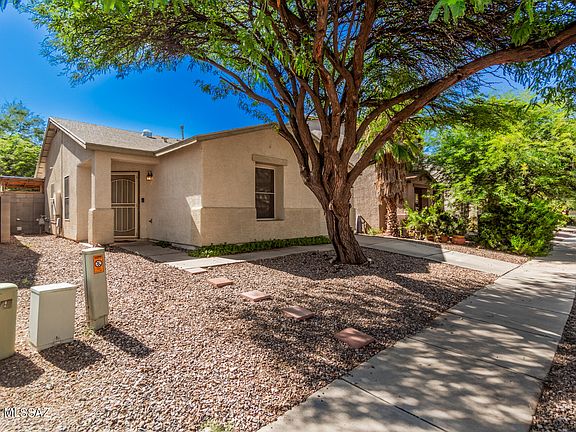 Home, sweet home! Check out this charming 2-bedroom, 2 bath residence in Pantano Ridge! A 1-car garage and a low-care landscape are just the beginning. Discover an inviting semi-open layout that perfectly balances privacy and connectivity! Neutral palette creates a welcoming atmosphere, enhanced by plush carpet in all the right places. The eat-in kitchen boasts matching appliances, ample cabinetry, and sliding doors merging the inside/outside activities. Enter the main bedroom to find a walk-in closet and an attached bathroom for your convenience. The backyard invites you to relax or enjoy BBQ, offering a mix of covered patio and open patios. Outside covered laundry area is located to the side of the patio. Washer and Dryer convey in as-is condition with the sale. Conveniently located close to schools, shopping, dining options, and easy access to downtown Tucson.