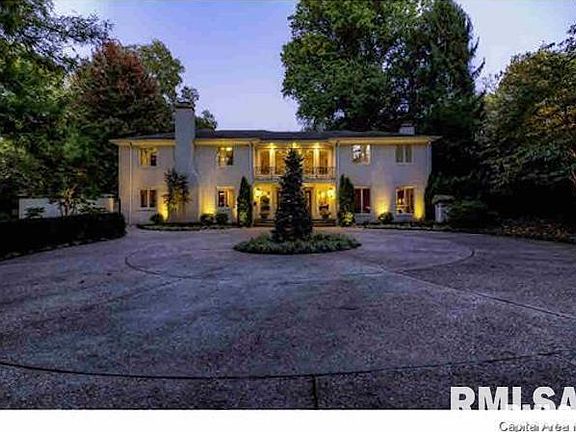 One of Springfield's most prestigious addresses, 2100 Ilini Road in the heart of Leland Grove. Indulge in this art deco style all brick 5 bedroom, 5 1/2 bath home built in 2002 with 3 master suites. Offering 5,762 square feet of meticulously cared for real estate. Elaborate finishes as you enter onto marble flooring, gorgeous handcrafted millwork throughout, curved staircase, main floor mother-in-law suite with private laundry, gourmet kitchen offering sub zero refrigerator, wine center, new cooktop, huge island and wet bar in butlers pantry open, to cozy family room leading to courtyard, gorgeous formal dining room overlooking private back lawn, large formal living room and library both with gas log fireplaces. The second level does not disappoint with a deluxe master suite offering his and hers bathrooms both with custom walk-in closets, a private ensuite guest bedroom and 2 additional bedrooms with bath. The circle drive is perfect for hosting guests in this luxury home designed for casual living or formal entertaining. 3 HVAC zones, irrigated lawn, 2 laundry rooms, 3 car, zero entry, heated garage. New roof November 2023 with transferable warranty. Basement professionally water proofed Fall 2023.